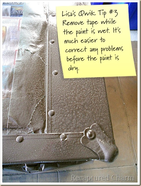 My client wanted a old metal look for the trunk, so I decided on Tremclad’s Hammered Paints. I LOVED the look of this paint.